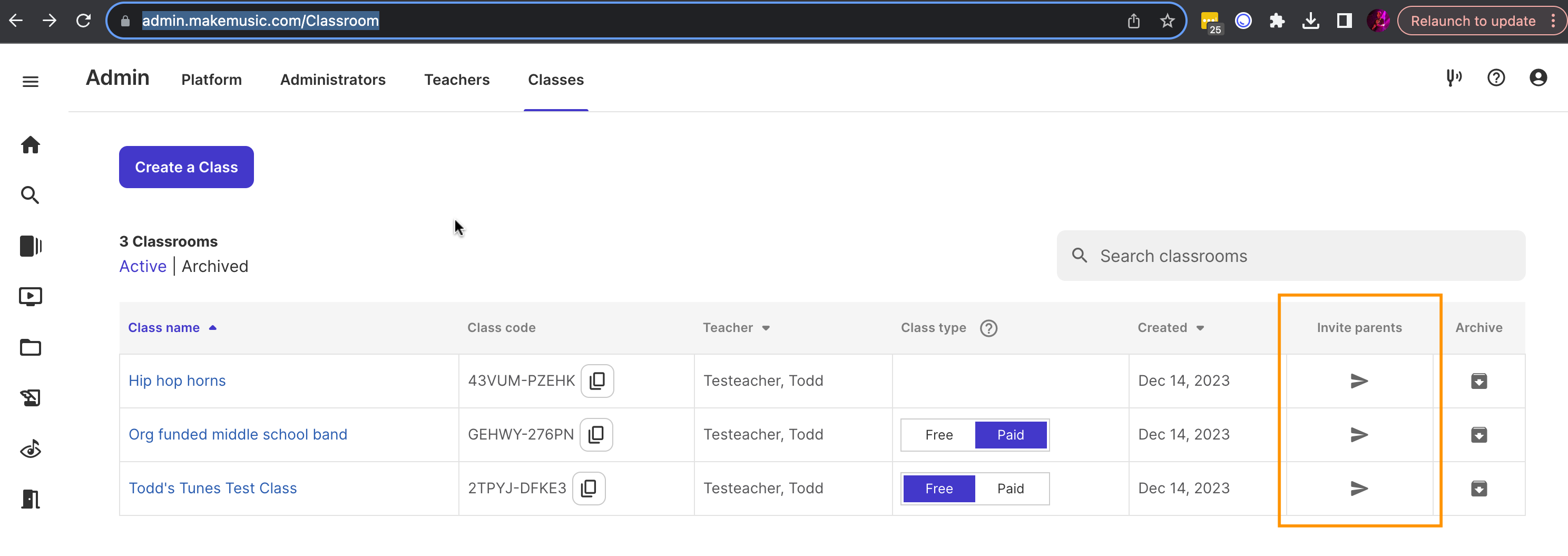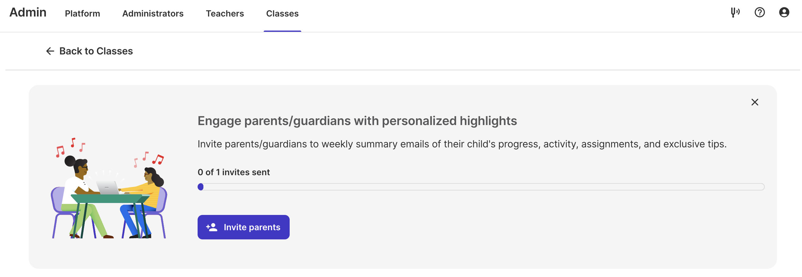 Alternately, teachers can visit their Admin Classroom page (requires the user to be logged in) and select the new Invite parents icon next to the class of their choosing to further streamline the process.