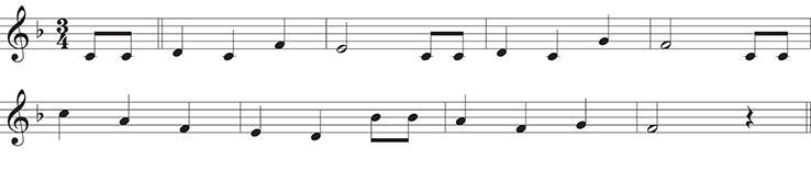 Your students are now warmed up for transcribing simple stepwise melodies—and there are lots of them out there! Have them focus only on the pitches, singing their answers using numbers and/or solfege syllables. We can reserve notating the melodies for another day— get them translating, singing solfege, for now. Remind them of some clues (for example, most melodies end on do of the key).